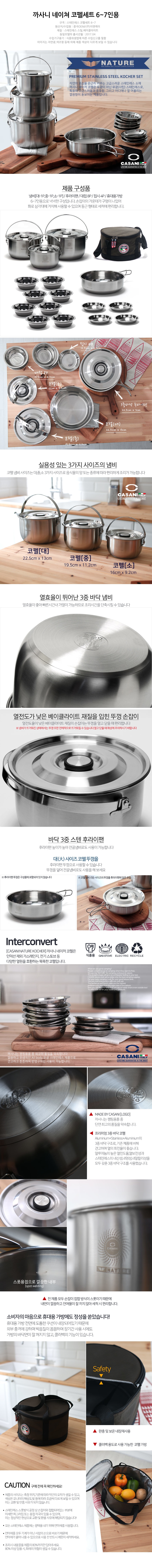 [까사니]_네이처 스텐코펠_6-7인용냄비(대/중/소-1P씩)/팬_후라이팬1P/대접8P/접시4P/휴대용가방(보온/보냉)