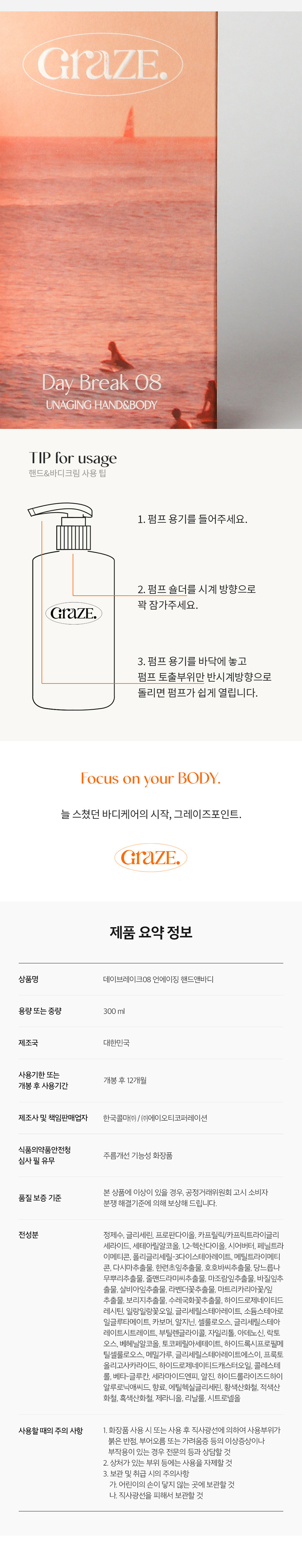 그레이즈포인트 데이브레이크08 언에이징 핸드앤바디 300ml